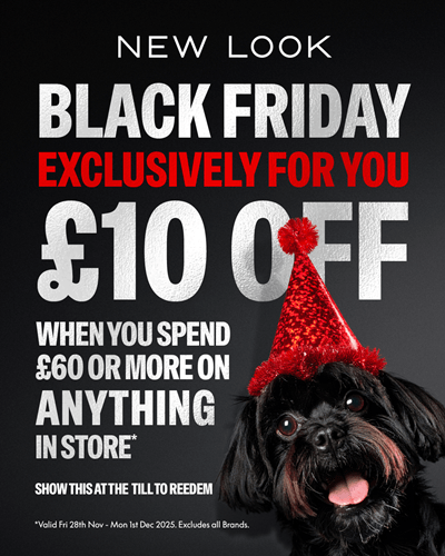 Enjoy our exclusive Black Friday offer! Show the promotional flyer in store and get £10 off when you spend £60 or more on anything in store.