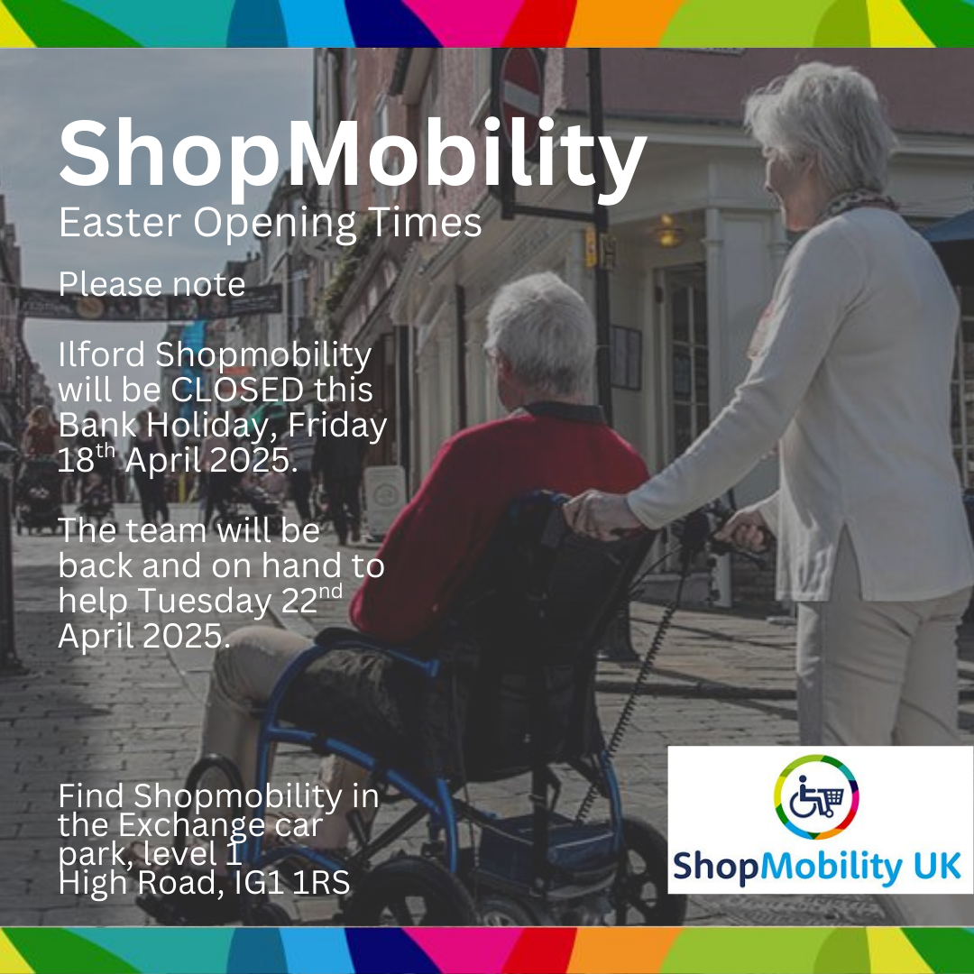 Please be aware that Ilford Shopmobility will be CLOSED over the Bank Holiday – from Friday 18th April, reopening on Tuesday 22nd April. The team will...