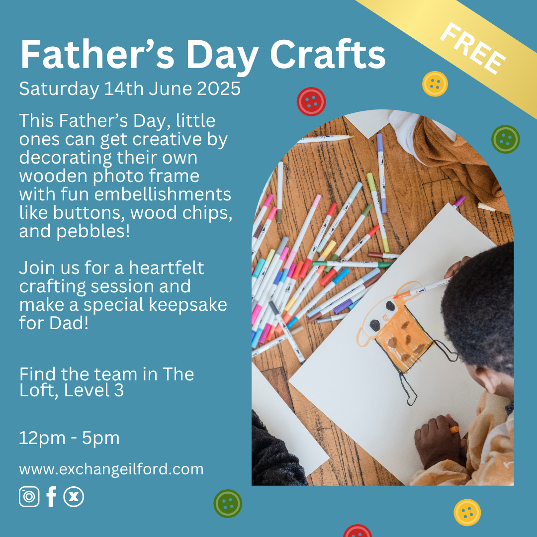 Join us Saturday 14th June as we celebrate Father's Day! Little ones can get creative by decorating their own wooden photo frame with fun embellishmen...