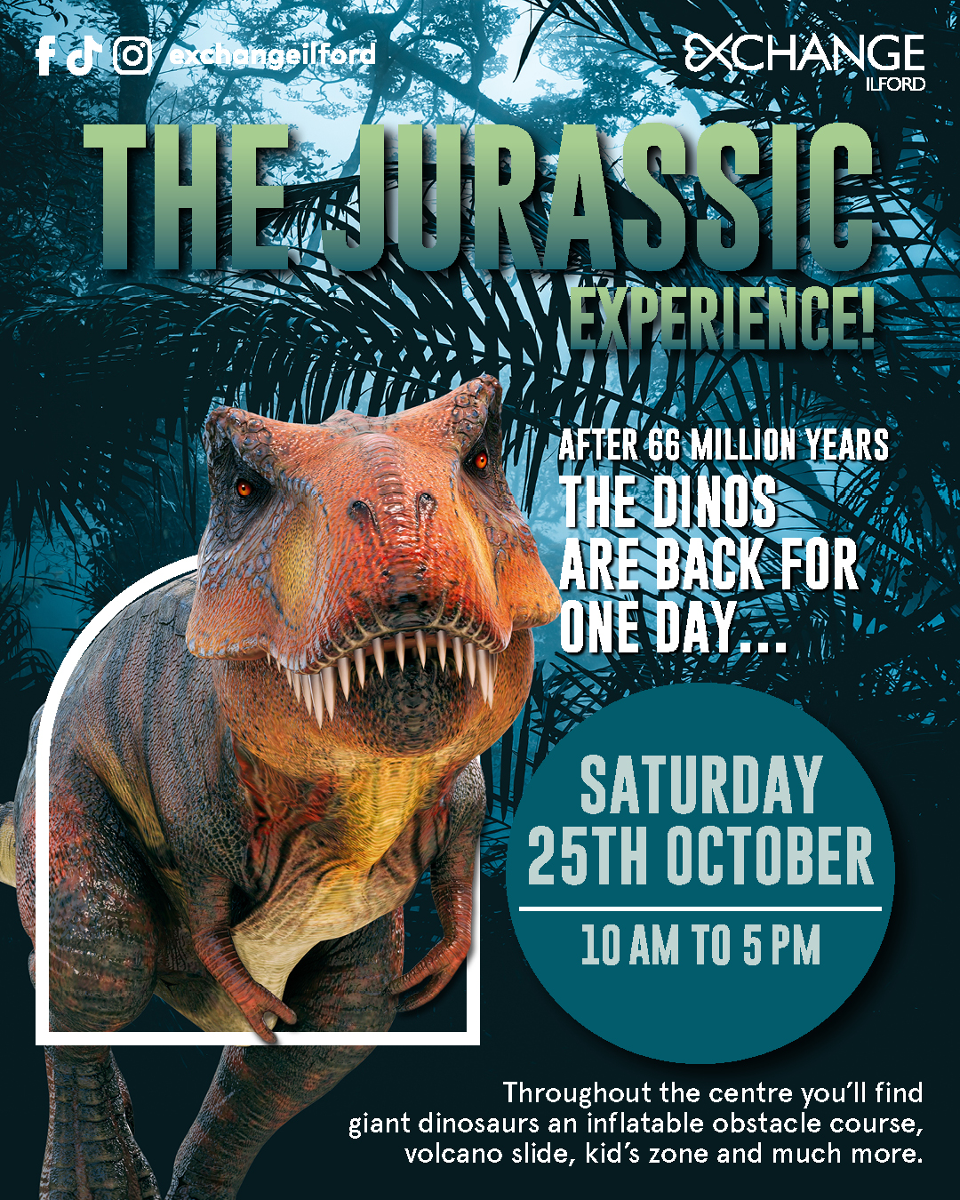 Join us at Exchange Ilford on Saturday 25th October, 10am – 5pm for one final roar as we transform the Centre into a Jurassic adventure. 🌿 Get up cl...